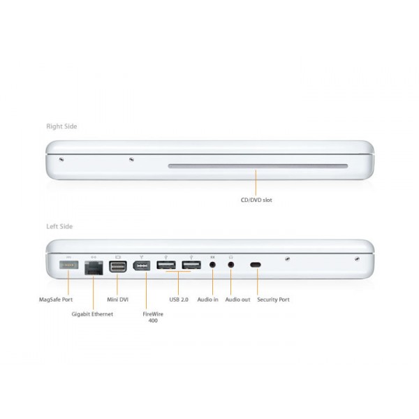 MacBook makes it easy to hit the road thanks to its tough polycarbonate case, built-in wireless technologies, and innovative MagSafe Power Adapter that releases automatically if someone accidentally trips on the cord.